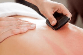 Here’s how it works: We use a gua sha tool, some oil over the area to be treated, and a lot of elbow grease. Your practitioner knows all the details on how to properly do this. Results for the patient are therapeutic along with the side effect of bruising, soreness, and what may feel like a sunburn. All worth the experience of health and wellness. The