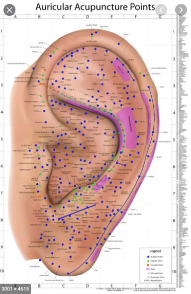 And the auricular map is just one way that acupuncturists use a portion of the body as a microcosm to holistically bring about balance and health to your system. There is such a depth and breadth to our acupuncture methods, the systems and techniques are mainly thousands of years old. It’s amazing what the body can do for itself when this application is used! Your Qi is amazing!!!
